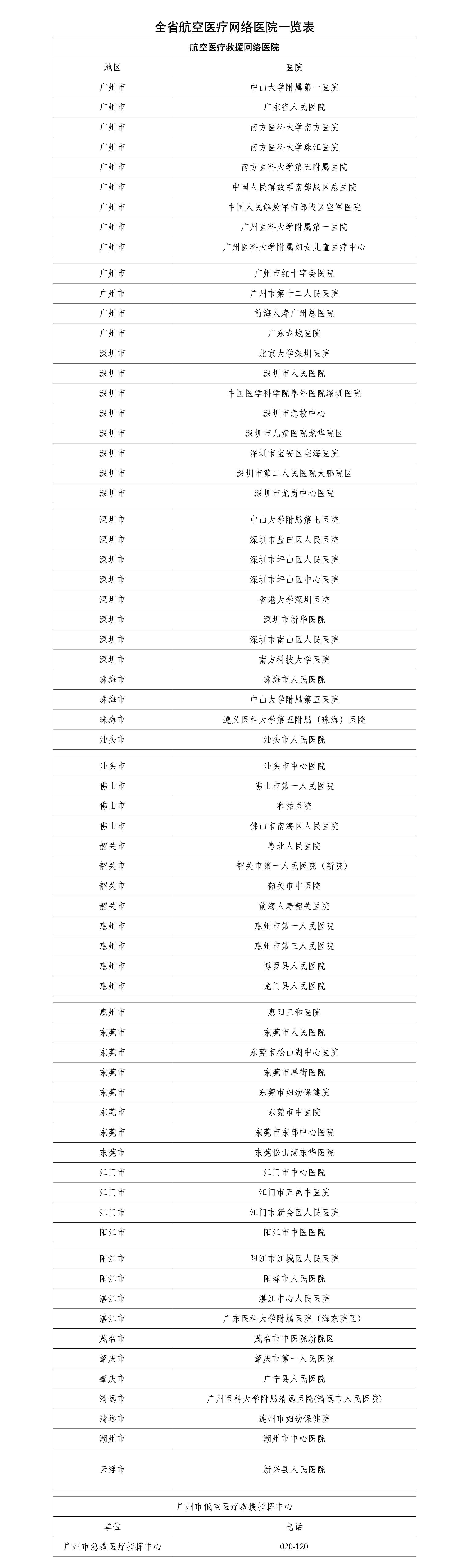会议透露,广州已基本建成“1+1+1+17+N”的“1小时低空医疗救援圈”,即1个航空医疗救援基地(广州医科大学附属第一医院)、1个航空医疗救援联合培训基地(由广州市红十字会医院、广州市急救医疗指挥中心、广州市公安局警务航空支队共建)、1个航空医疗救援指挥中心(广州市急救医疗指挥中心)、17家广州地区拥有直升机停机坪的高水平医院,以及65家广东设有直升机起降点的医疗机构。