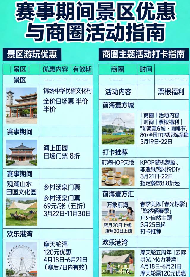 参与商户的名单也颇为考究:仔细翻阅不难发现,从坪山书城的书香氛围,到前海商圈的市井烟火,门票联动的优惠设计精准踩中了深圳年轻人的生活节奏。