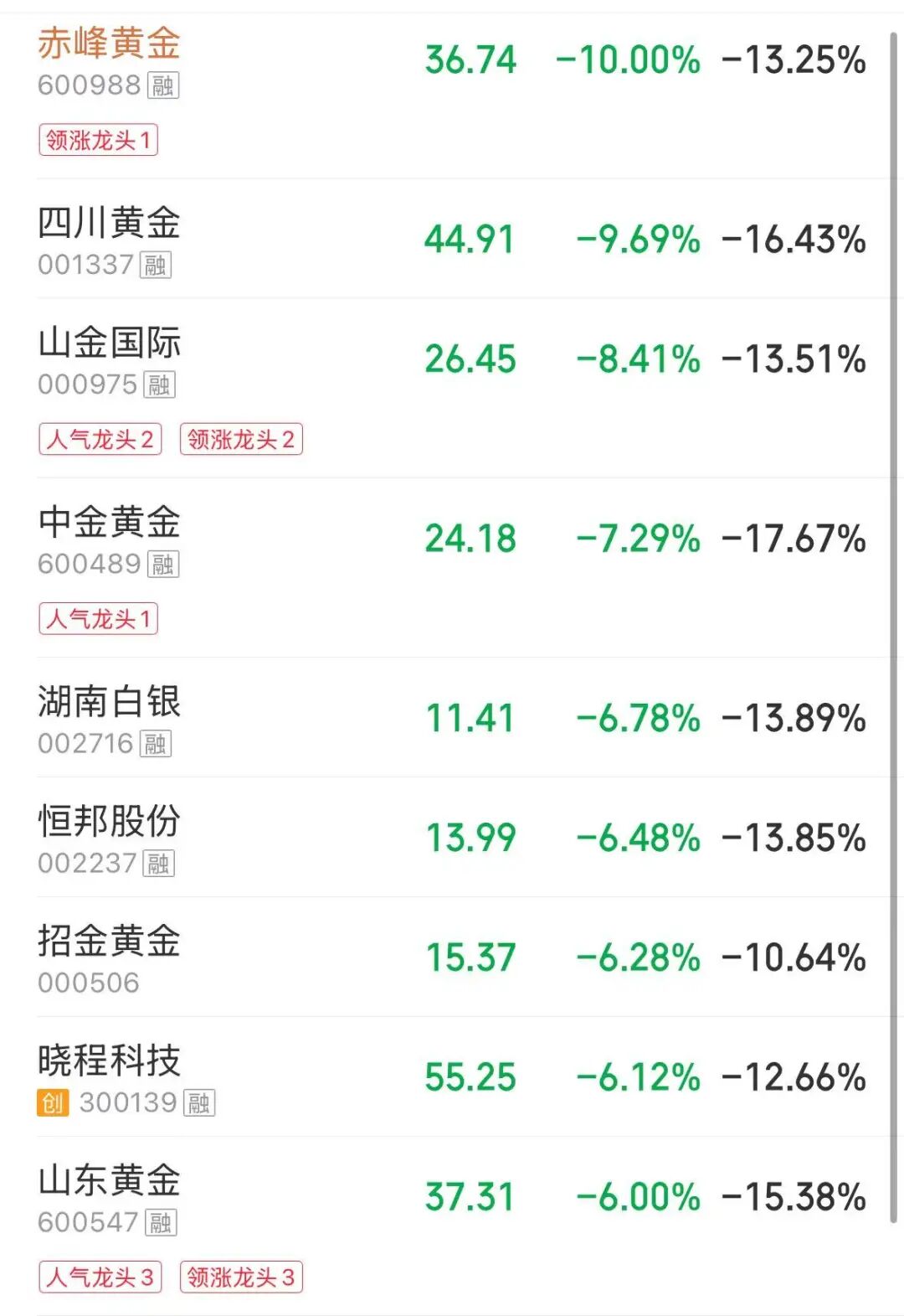 下跌方面,贵金属板块大跌,赤峰黄金跌停。