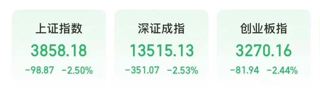 截至午间收盘, 沪指跌2.5%,深成指跌2.53%,创业板指跌2.44%。
