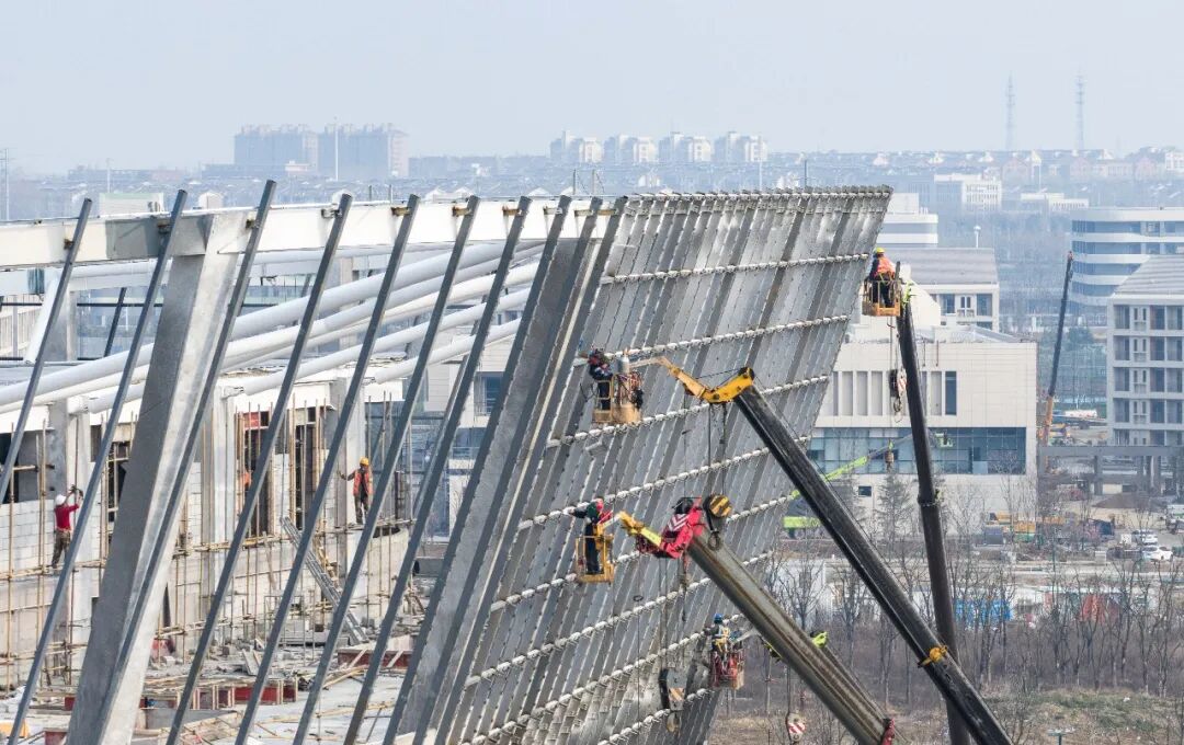 位于江苏省宿迁市湖滨新区的宿迁学院新校区建设工地,工人们正在紧张施工。 陆启辉 摄