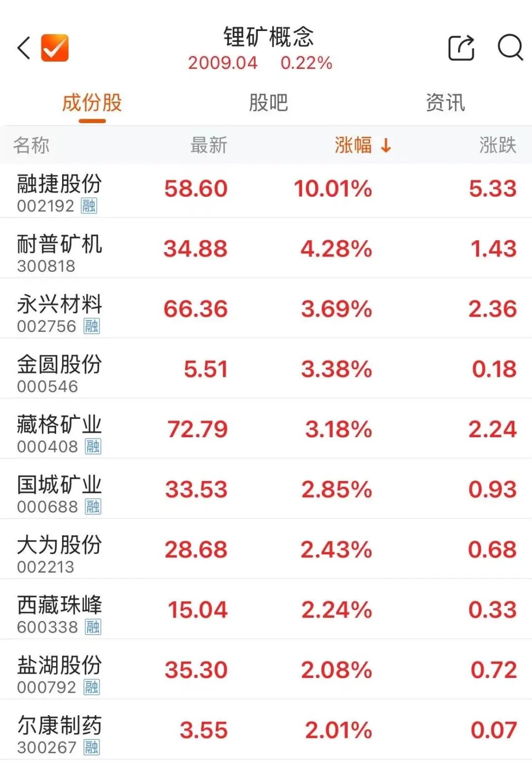 3月24日,A股主要指数集体高开,深证成指、创业板指随后回落翻绿。广期所碳酸锂主力合约早盘涨超6%,锂矿概念股上涨,融捷股份(002192)涨停,藏格矿业、国城矿业等跟涨。