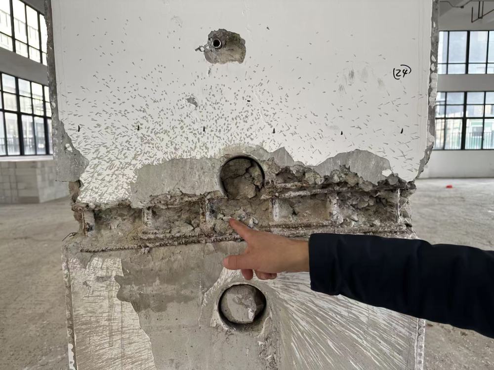 2025年6月,柴堂计划装修新厂房作为新材料的生产车间。没想到工人在清理时,扫去掩盖地面的大量渣尘,发现二楼以上的楼板出现大量裂缝,多根承重梁柱出现混凝土蜂窝现象。