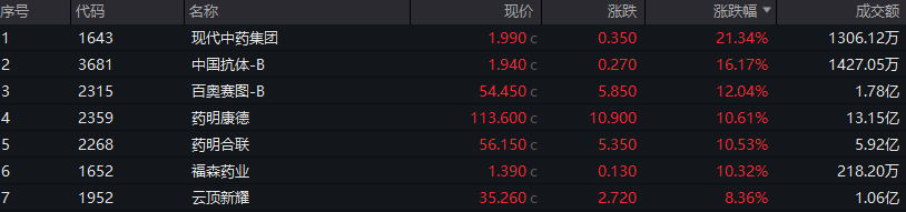 生物医药板块多股走强,百奥赛图-N涨超12%,药明康德、药明合联涨超10%。