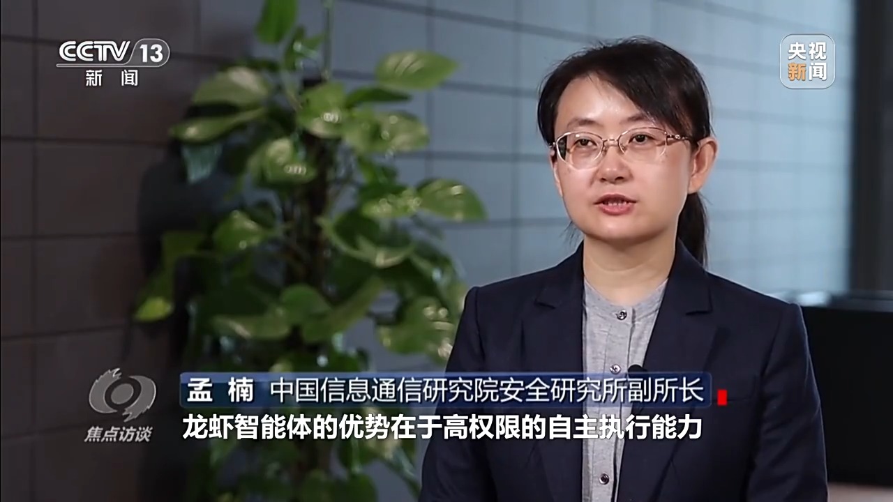 中国信息通信研究院安全研究所副所长 孟楠:“龙虾”智能体的优势在于高权限的自主执行能力,它让人工智能从“能说”进化到“会做”,同时也带来了一些新的安全风险。