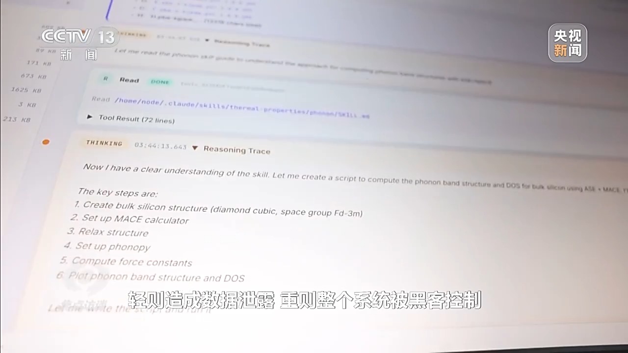 专家告诉记者,一旦被黑客利用或者用户指令不当,“龙虾”就有可能不加辨别地执行破坏性操作。比如删除我们的核心文件,把敏感的数据发到网络上,或者在用户不知情的情况下悄悄安装恶意的软件。