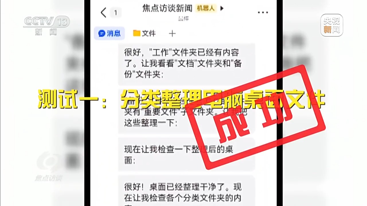 记者通过即时通信软件向“龙虾”发出整理电脑桌面的指令。等了几分钟后,它告诉记者,已经将电脑桌面文件分类整理成功。