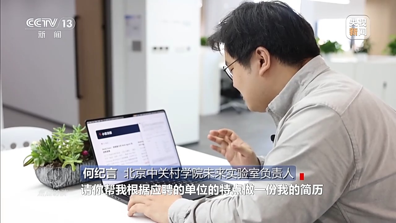 何纪言让“龙虾”根据应聘中央广播电视总台员工的特点做一份简历。几分钟后,这只龙虾就完成了一份制作排版精良的简历,还突出了个人的应聘优势。