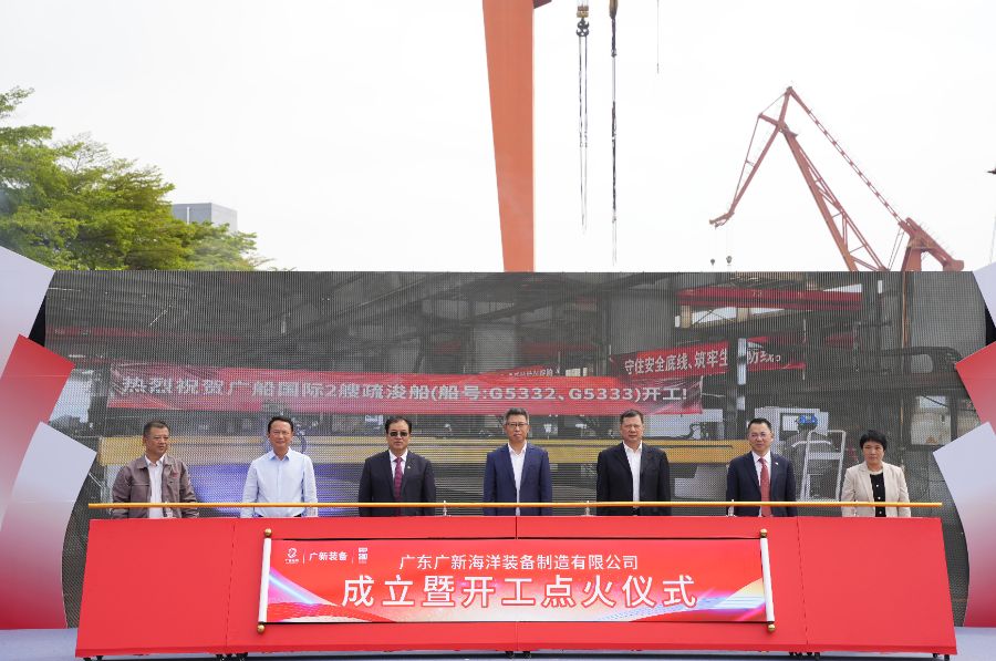 在开工点火仪式上,中船广船国际党委副书记、总经理周旭辉在致辞中介绍,中船广船国际与广新集团强强联合,共同孕育了广新装备,是践行海洋强国战略、助力制造强省建设的具体行动。自双方签署合作协议以来,已为新公司承接近20亿元订单,交船期排至2029年。