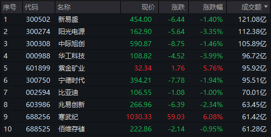个股方面,新易盛成交额超121亿元居首,阳光电源、中际旭创、华工科技成交额靠前。