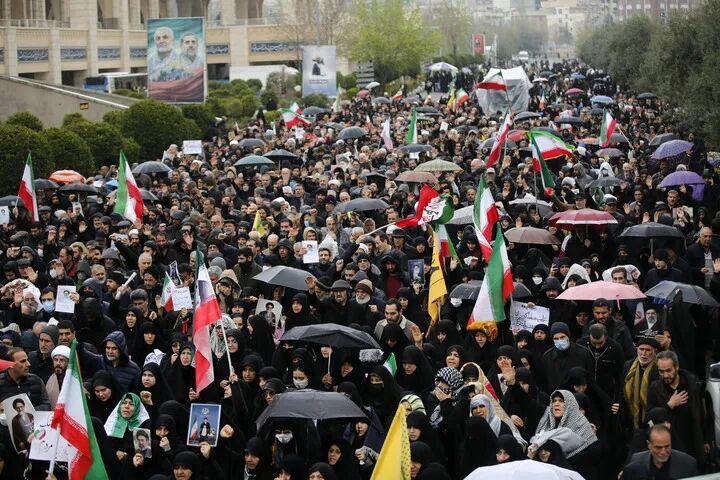 3月20日,在 伊朗 首都德黑兰,人们参加 伊朗 情报部长伊斯梅尔·哈提卜及其家人的遗体告别仪式。新华社发