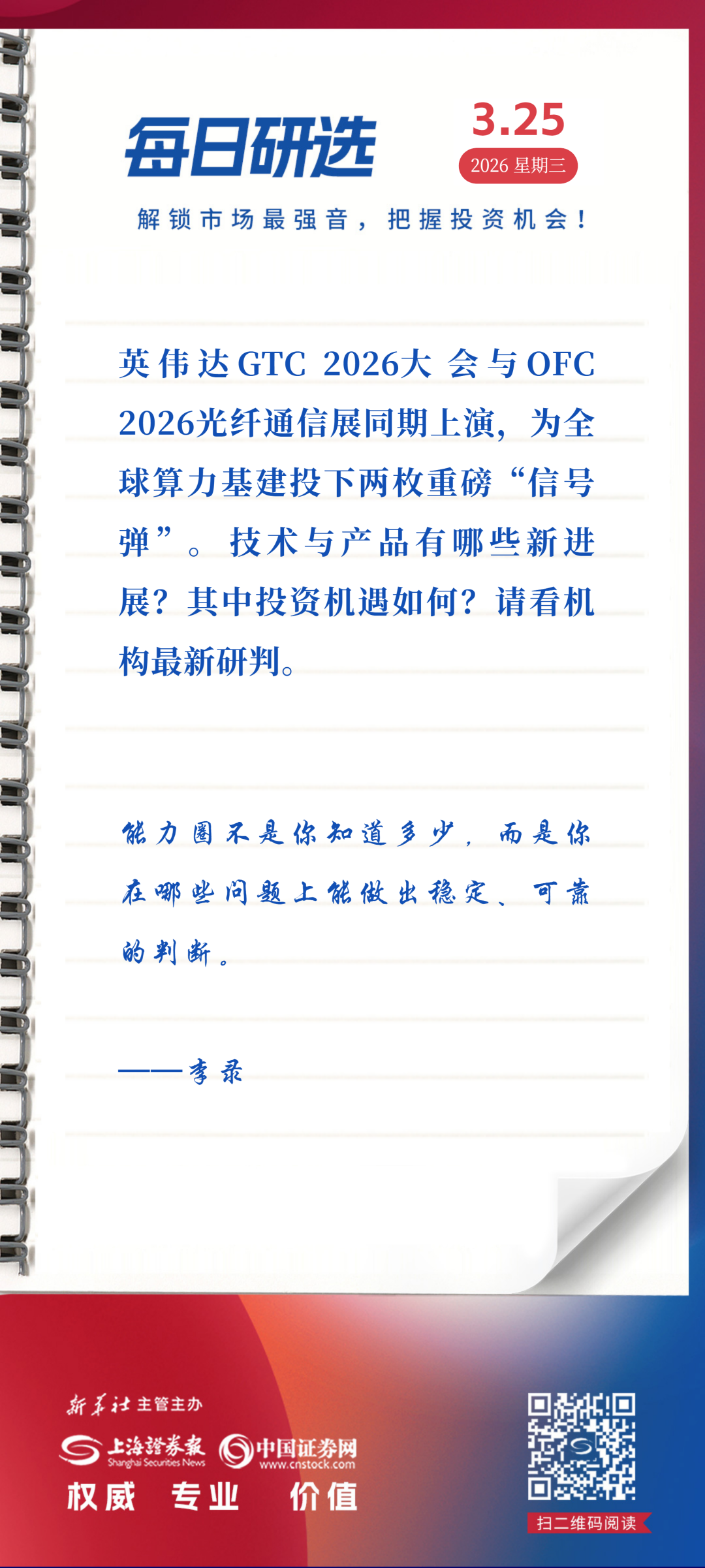 英伟达GTC 2026大会与OFC 2026光纤通信展同期上演,为全球算力基建投下两枚重磅“信号弹”。技术与产品有哪些新进展?其中投资机遇如何?请看机构最新研判。
