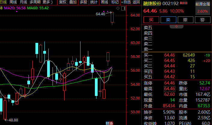 锂矿概念走强, 融捷股份 2 连板,西藏城投、华友钴业、西藏矿业、天齐锂业等跟涨。