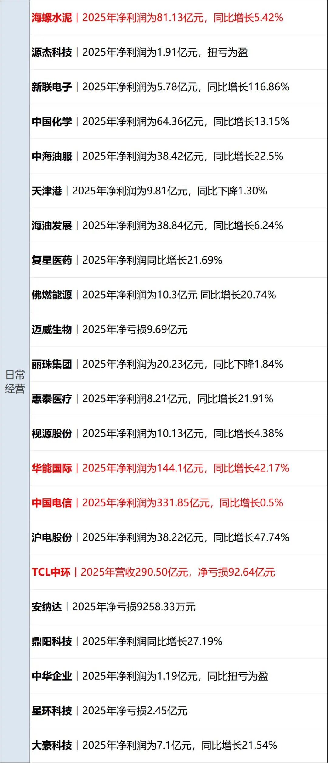 海底捞(HK06862,股价15.99港元,市值891.28亿港元): 3月24日晚间,海底捞公布2025年业绩,全年收入432.25亿元,同比增1.1%,净利润40.42亿元,同比下降14%。成本上升、翻台率下降致利润承压,但外卖业务翻倍增长,加盟模式和多品牌孵化改变财务结构。