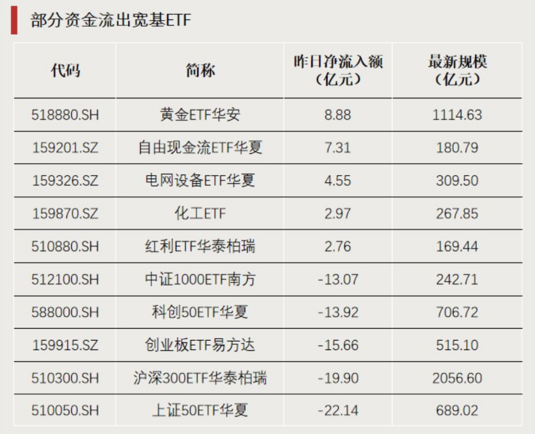 部分资金流出宽基ETF