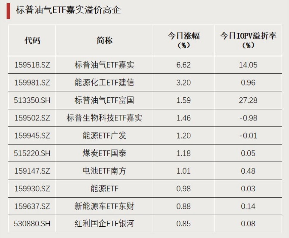 标普油气ETF溢价率高企