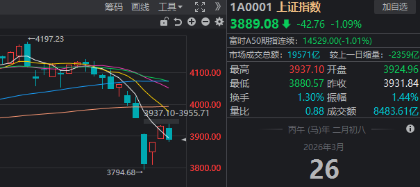 3月26日,市场震荡调整,三大指数冲高回落跌超1%,科创50指数跌超2%。截至收盘,沪指跌1.09%,深成指跌1.41%,创业板指跌1.34%。