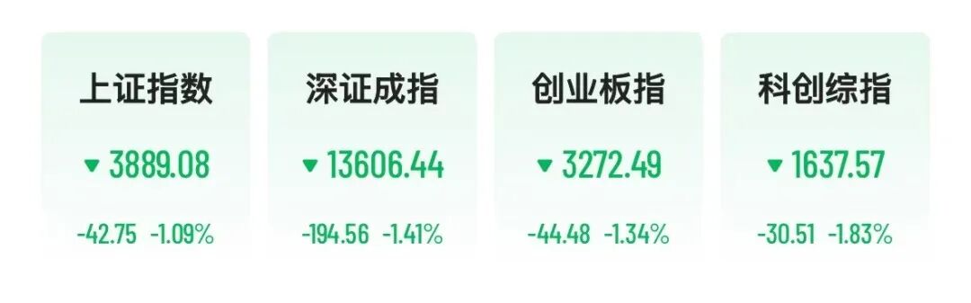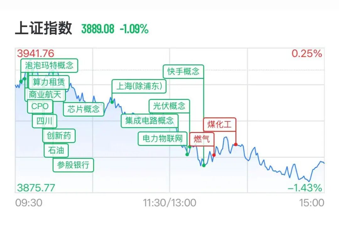 A股市场冲高回落,四大指数均跌超1%,沪指失守3900点,全市场近4500股下跌。