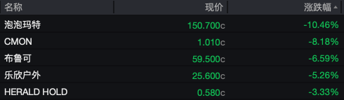 消费和科技板块重挫。休闲用品板块中,泡泡玛特(9992.HK)大跌10.46%,拖累整个板块表现。娱乐板块方面,第七大道(0797.HK)暴跌18.89%;软件板块中,新利软件(8076.HK)下跌10.34%,反映软件股仍然承压。