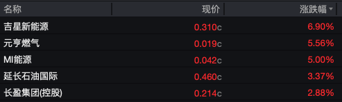 具体来看,能源板块的强势表现与全球能源价格走势密切相关。石油天然气板块中,吉星新能源(3395.HK)上涨6.9%,成为该板块的领涨个股。环保板块方面,沛然环保(8320.HK)大涨16.13%。煤炭板块中,汇力资源(1303.HK)上涨4.08%。传统能源股显示出防御性特征。