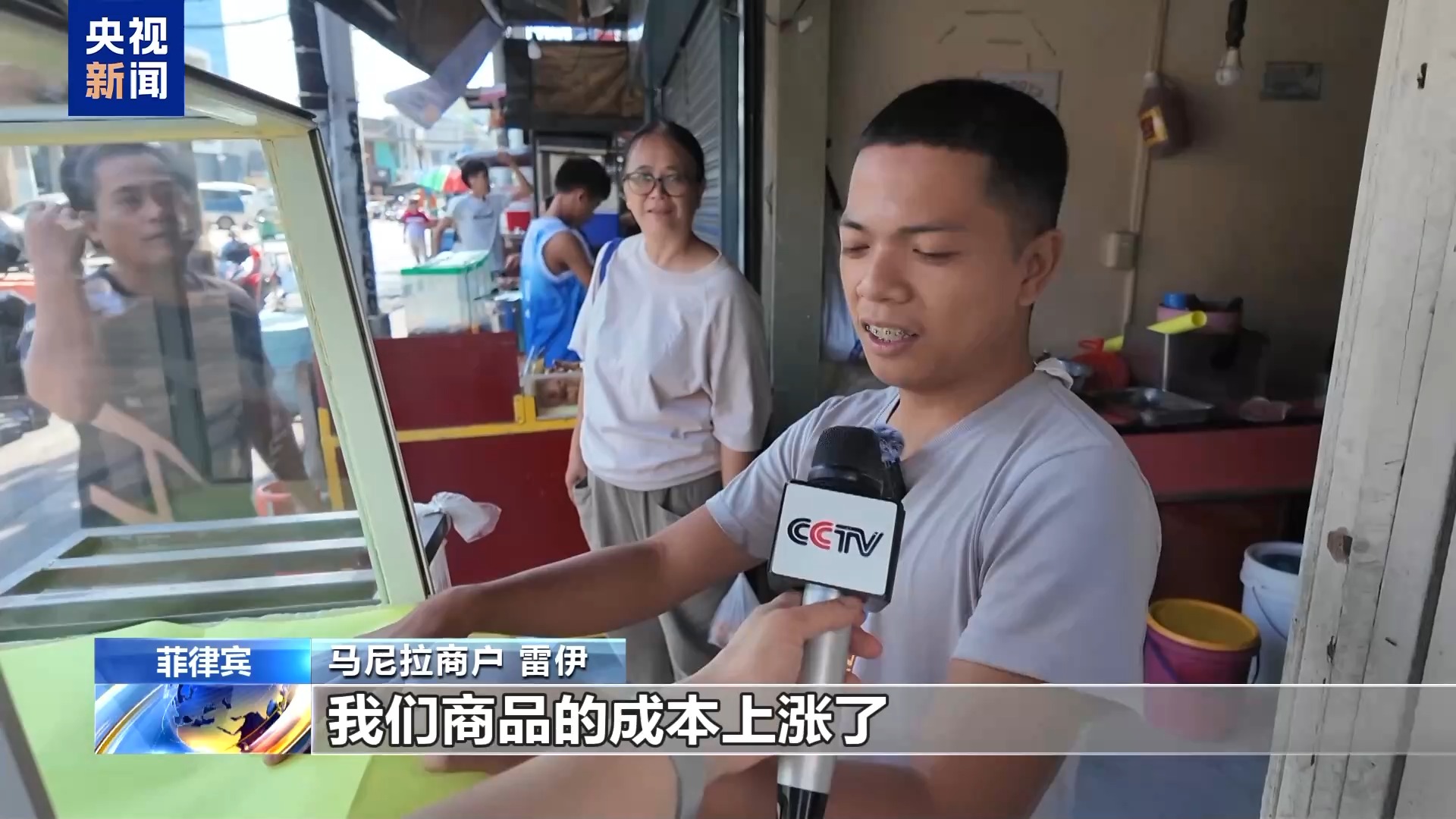 马尼拉商户 雷伊:我们商品的成本上涨了,收入也随之减少。赚到的钱勉强够进货,都不够付员工工资。