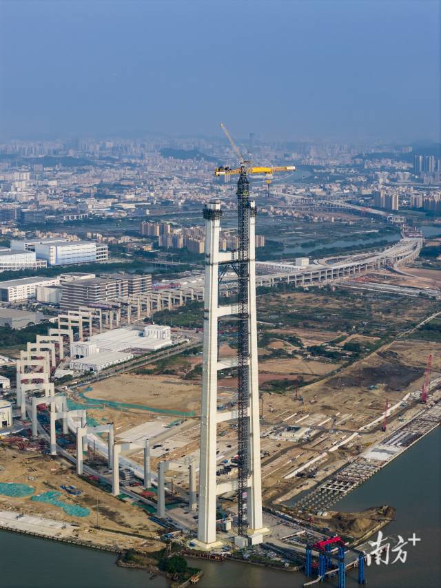 2026年1月22日,狮子洋大桥建设高度突破300米