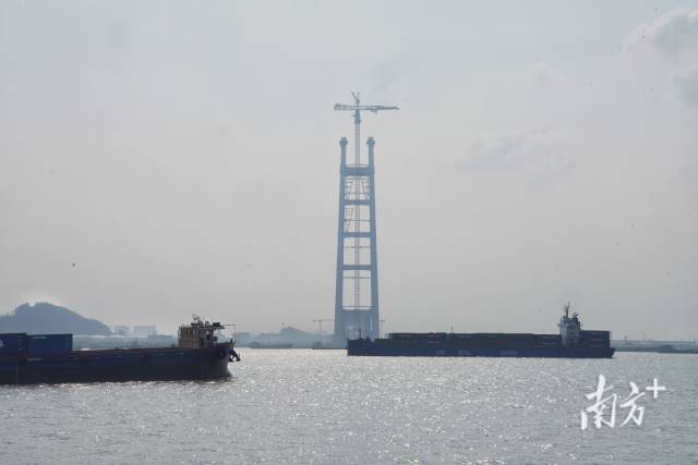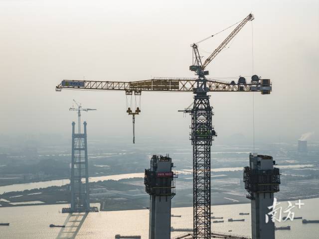 2025年4月2日,狮子洋大桥建设高度突破100米