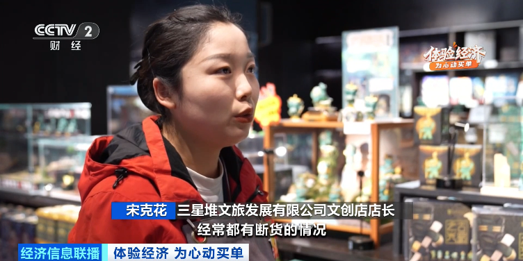 三星堆文旅发展有限公司文创店店长 宋克花:爆款有很多,经常出现断货的情况。游客量大的时候,每天都是12000件的补货量。