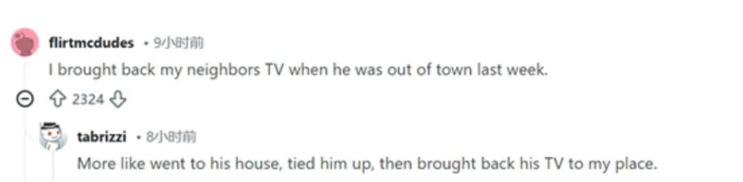 更有网友形容,这就像“上周邻居外出的时候,我把他家电视搬回来了。”有网友回复,应该“更像是去了他家,把他绑起来,然后把他家电视搬回了我家。”↓