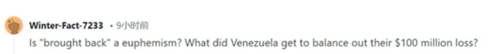 “‘带回来’是委婉的说法吗?委内瑞拉得到了什么来弥补他们损失的1亿美元?”↓