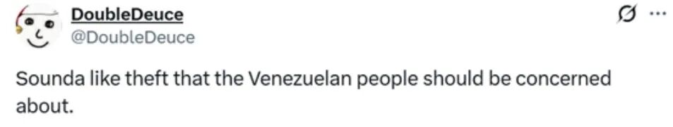 “难道会有任何人对此感到意外吗?我们确实从委内瑞拉民众手中窃走了1亿美元,而这些人本就在挨饿并为生存挣扎。难怪连我们自己的盟友都对我们丧失了信任。”有网友说。
