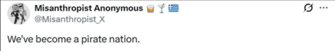 “我们已变成海盗国家”。↓