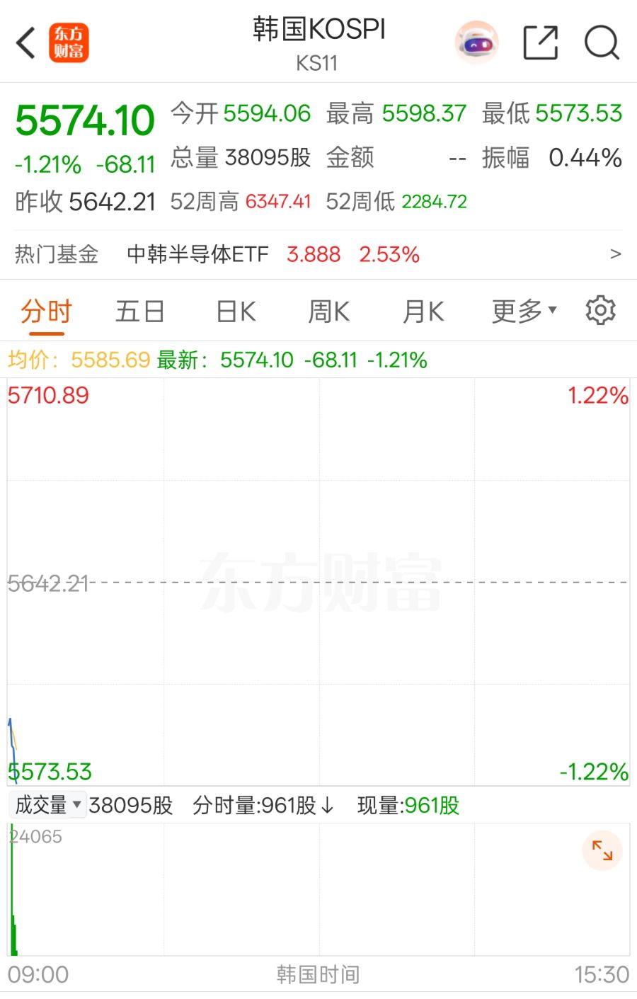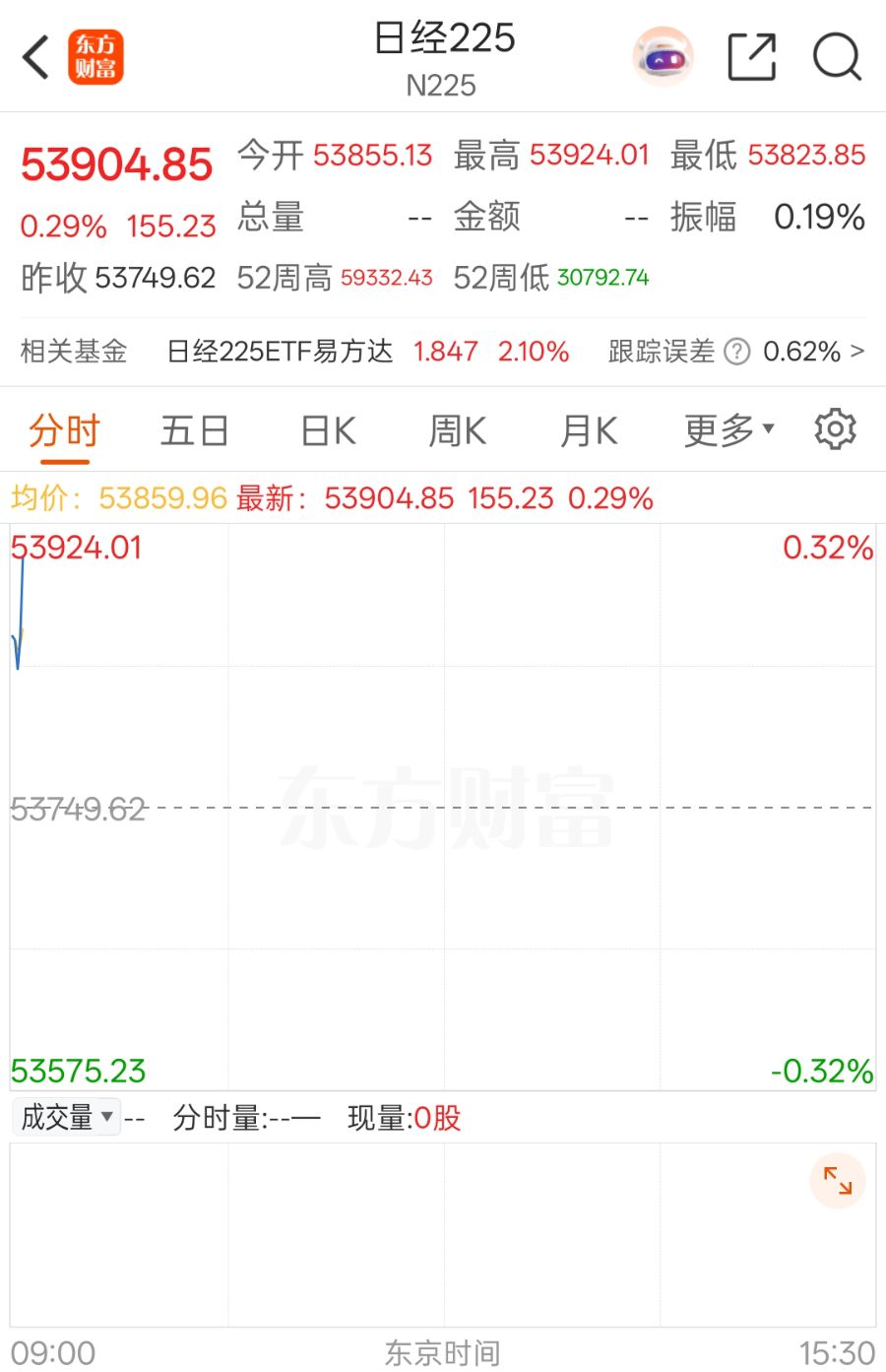 日经225指数涨0.29%,韩国KOSPI指数跌1.2%。