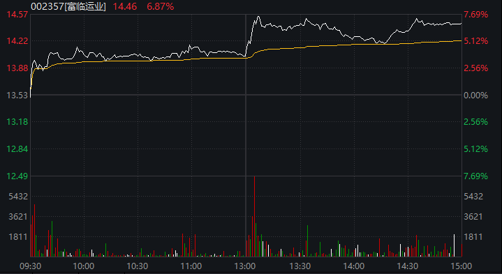 今日(3月25日),富临运业股价大幅走高,截至收盘,涨6.87%,报14.46元/股,总市值45亿元。