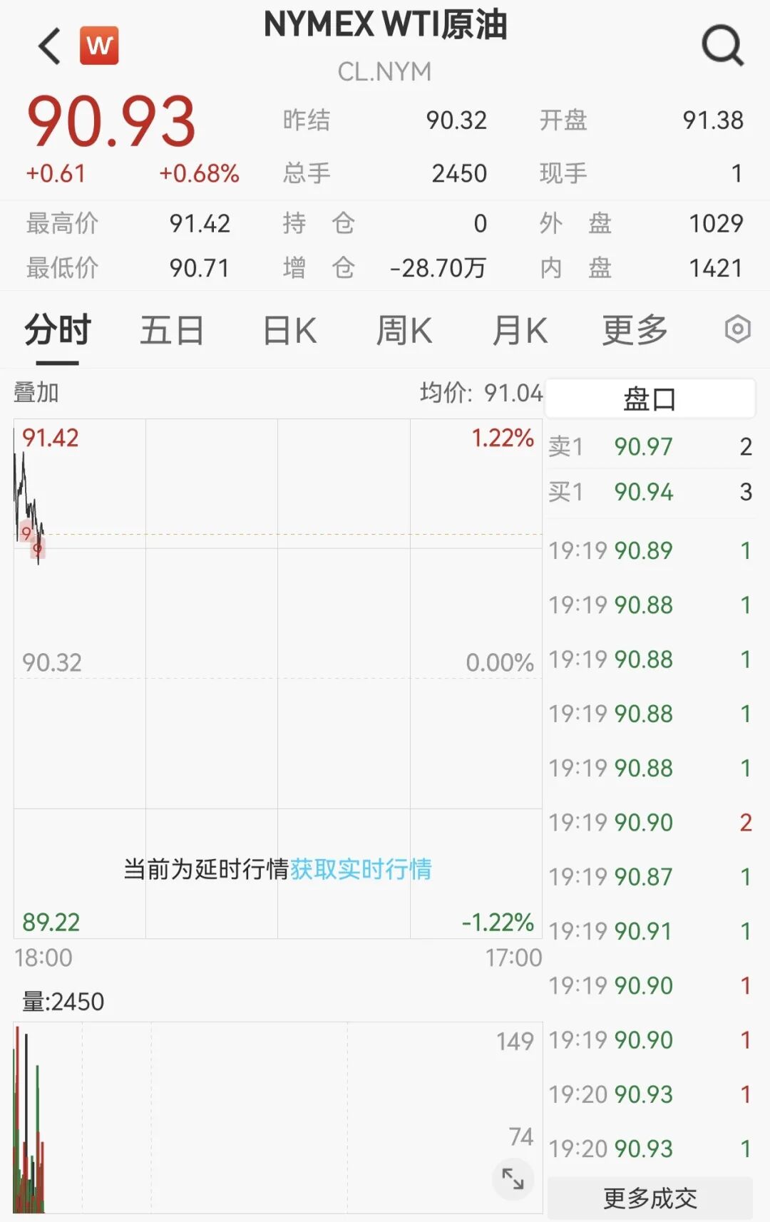当地时间3月25日,美油主力合约收跌1.15%,报91.29美元/桶;布油主力合约跌2.18%,报98.04美元/桶。收市后交易有所反弹,截至记者发稿,美油主力合约涨0.68%。