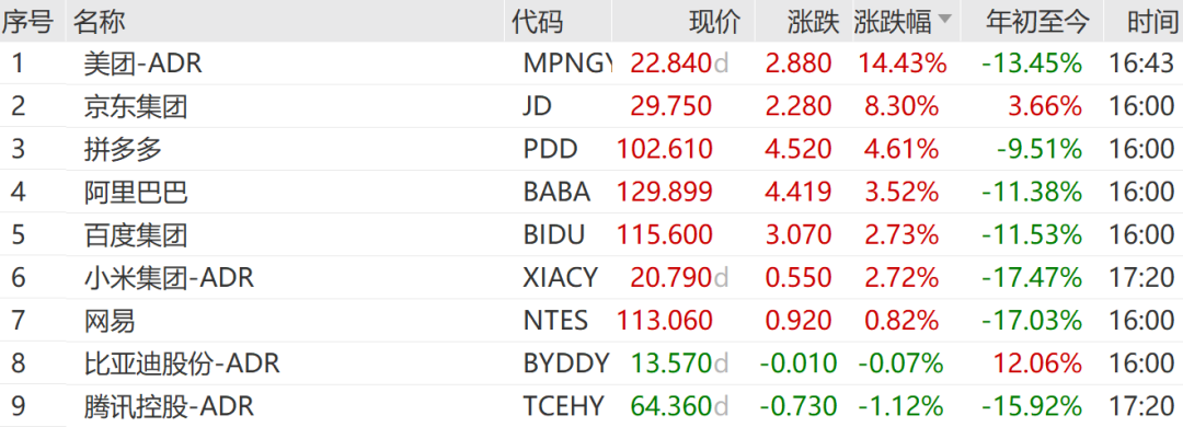 3月25日,国家市场监督管理总局官网转载《经济日报》评论文章《外卖大战该结束了》,引发市场强烈关注,“外卖大战”将有望迎来转机,电商板块集体大涨。美团大涨14.43%,京东集团涨8.30%,拼多多涨4.61%,阿里巴巴涨3.52%,领涨万得中概科技龙头指数成份股。