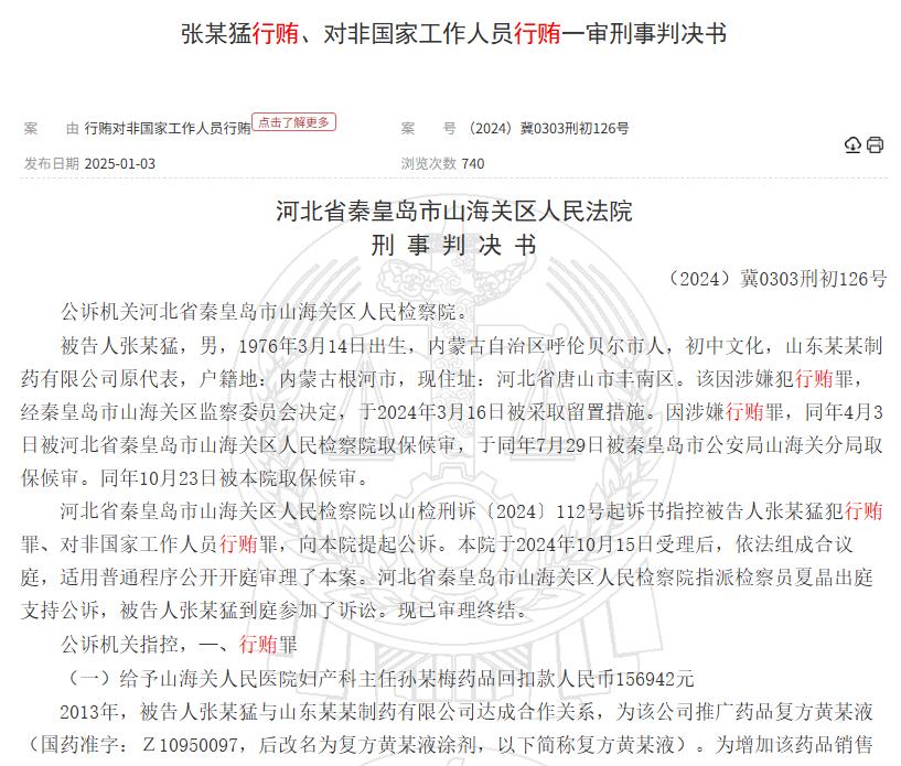 国家医保局披露的案件细节显示,2013年8月至2023年7月期间,山东某制药企业推广员张某猛为推广复方黄柏液,向秦皇岛市山海关人民医院多名医务人员支付回扣及好处费共计36.5万元。