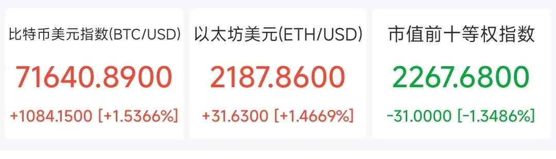 加密货币方面,比特币上涨1.5%,以太坊上涨1.4%。