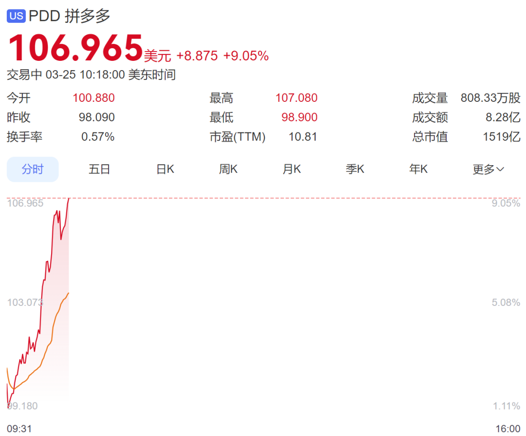 中国金龙指数上涨1.6%,其中宝尊电商大涨16.10%,拼多多涨超9%,虎牙涨近7%,京东、唯品会涨超5%, 世纪互联涨超4%。