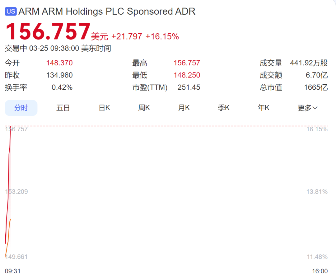 美股 半导体板块盘初走强,截至发稿, ARM大涨超16%。 消息面上,Arm发布自研数据中心CPU并获Meta首批采用,RB C同步上调目标价至175美元。 英特尔、 迈威尔科技 涨超4%,高通、德州仪器涨近2%。