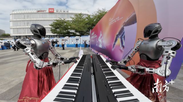 机器人在弹钢琴。