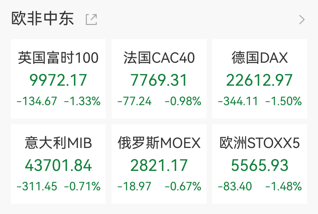 周四(3月26日),欧美股市集体收跌。其中纳指跌超2%,日内跌超500点标普500指数跌超1.7%跌破6500点,创去年9月初以来的新低;英国富时100指数、德国DAX指数、道指均跌超1%。