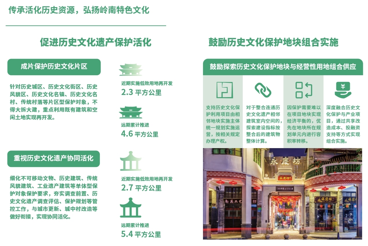 文脉重传承,微改造、巧融合。对于承载城市记忆的老建筑、旧厂房创新探索“历史文化+经营性用地”组合供应与容积率转移机制,让老遗产融入新生活,实现绿意进生活,文脉入新城。