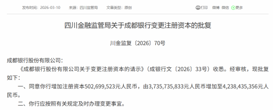 通过“可转债转股”,成都银行新增股份超过6.26亿股,占转股前总股本的17.34%,为注册资本的提升奠定了直接基础。