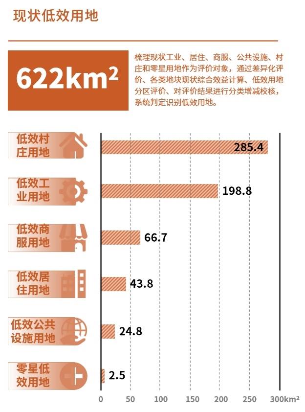 第一,精准识别,先把城市“家底”摸清楚。广州市规划和自然资源局创新采用分类评价、分区调节、逐宗校核的方式,从发展质量、经济产出、服务能力、配套设施、环境品质、综合安全六个维度,对每一块用地综合“打分”。同时,不搞“一刀切”,差异化设定各片区评价标准。经过逐宗核实,全市共识别低效用地约622平方公里,并建立全市统一的资源数据库。