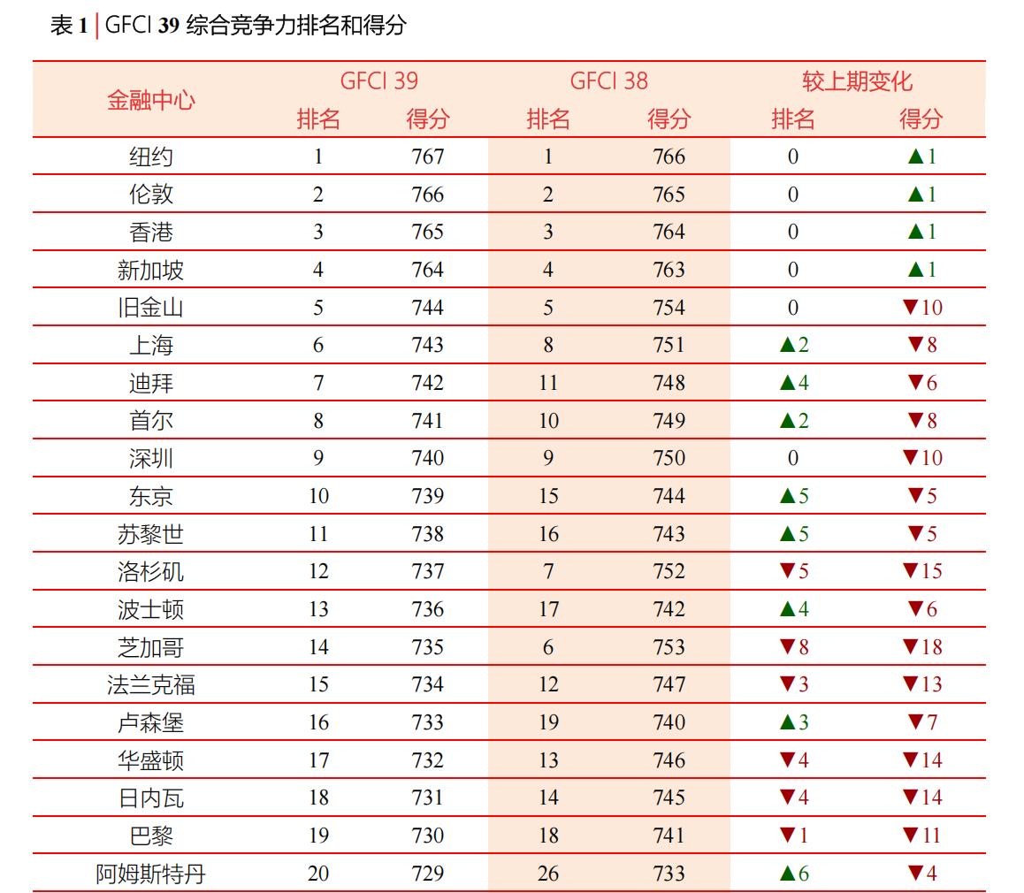 该指数由英国智库Z/Yen集团与中国(深圳)综合开发研究院在英国伦敦和中国深圳同时发布,从营商环境、人力资本、基础设施、金融业发展水平、声誉等方面对全球主要金融中心进行了评价和排名。本期GFCI报告共有120个金融中心进入榜单,本期金融中心发展呈现以下特征和动向。
