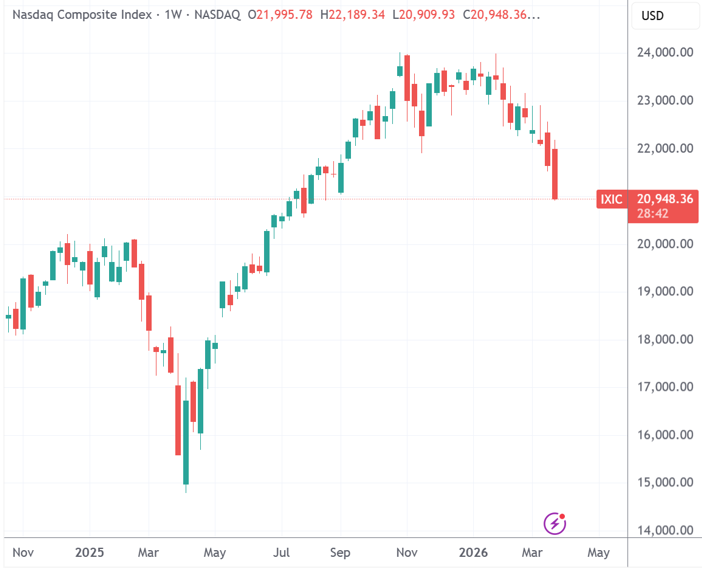 截至周五收盘, 纳斯达克指数本周累计下跌3.23%,创去年4月“关税冲击”以来最大单周跌幅 。