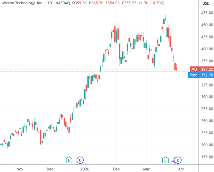 除了“七巨头”外,存储巨头美光科技虽然在周五止住了此前“五连跌”的步伐, 但 本周依然录得15.53%的整体跌幅 。 本轮下跌始于3月18日公司发布全面好于预期的财报,并在本周谷歌展示所谓的压缩算法TurboQuant后加剧。