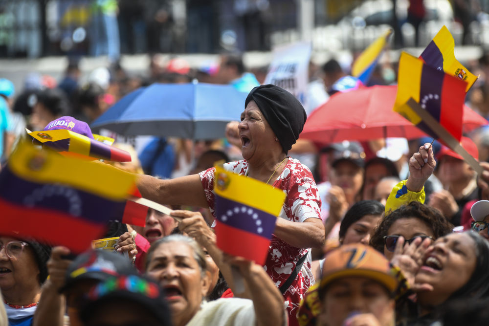 3月26日,委内瑞拉民众在首都加拉加斯市中心的玻利瓦尔广场举行集会,声援总统马杜罗。新华社发(马科斯·萨尔加多摄)