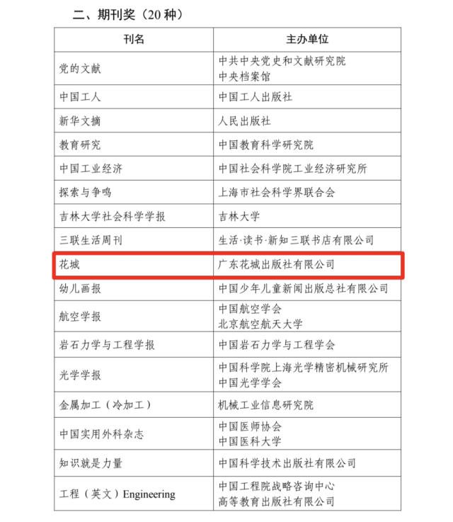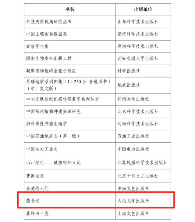 其中,广东作家葛亮的《燕食记》、胡永红的《万物生长·一个人的营盘》获得第六届中国出版政府奖(图书奖),广东文学工作者张懿获得第六届中国出版政府奖(优秀出版人物奖),广东文学期刊《花城》获得第六届中国出版政府奖(期刊奖)。